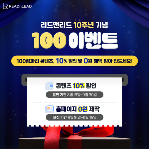 리드앤리드가 창립 10주년을 기념해 콘텐츠 10% 할인(~9월 30일)홈페이지 0원 제…